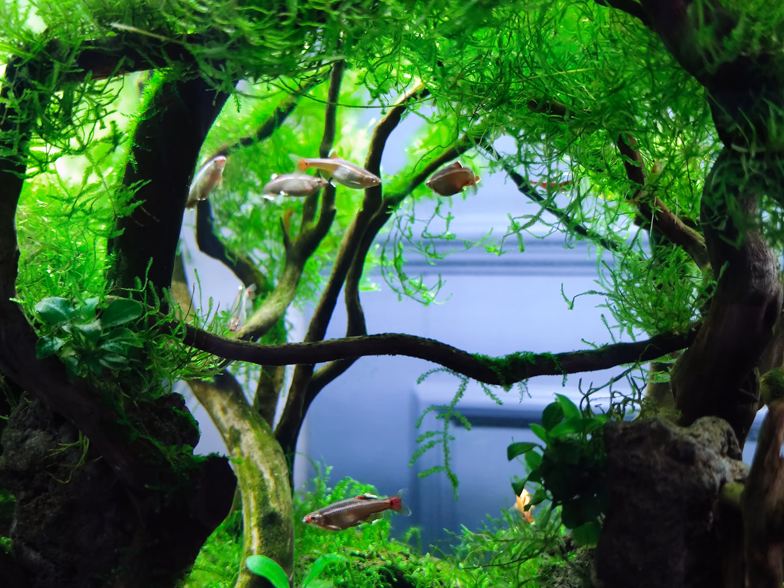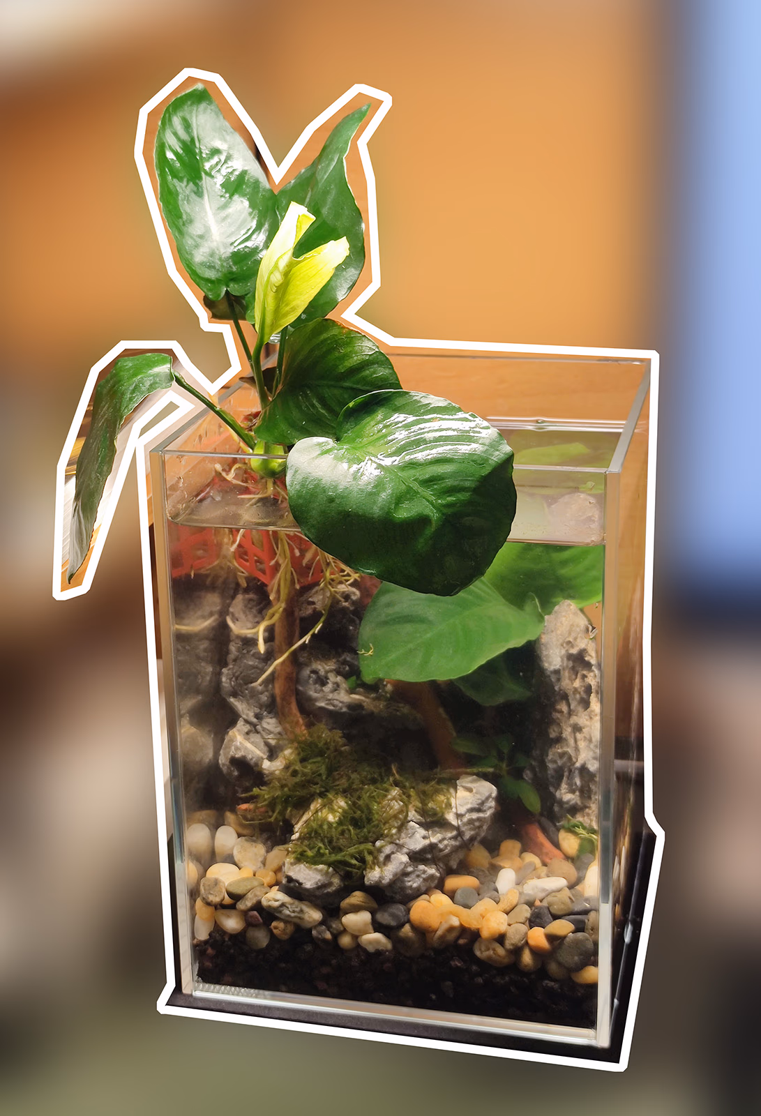 在宿舍开了一个 15cm*15cm*20cm 无过滤小缸: