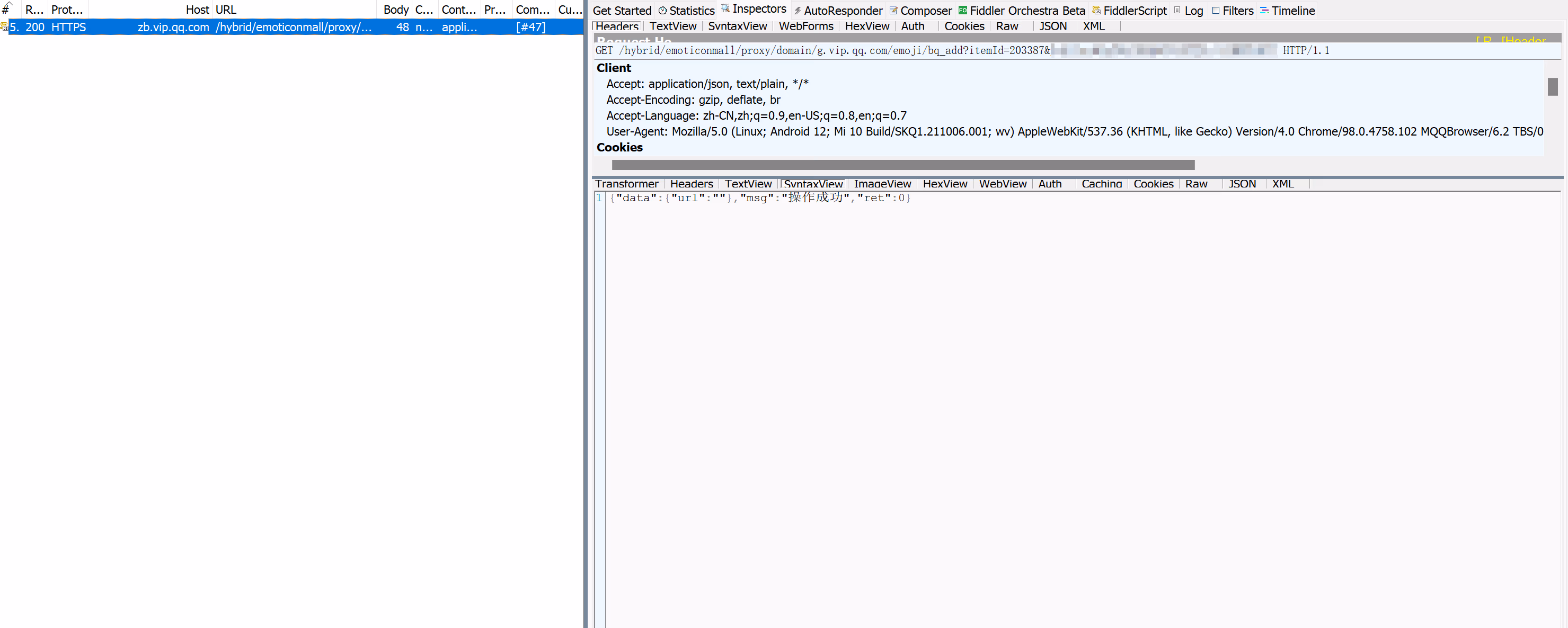 itemId - 手机 QQ 上添加一个未过期的表情,用 Fiddler 拦截上图请求,修改