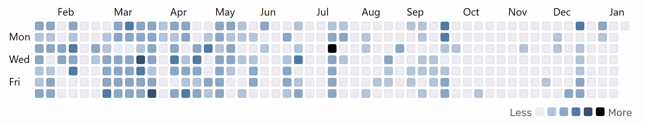 不用上课的时间我就在狠狠做自己的 hobby projects。我有用 WakaTime 统计编码时间的习惯,根据 WakaTime 2024 年度报告,总共编码了 702h(不包含实习工作的编码时间,因为忘了装 233333),最多的一天 Coding 了 12h。。