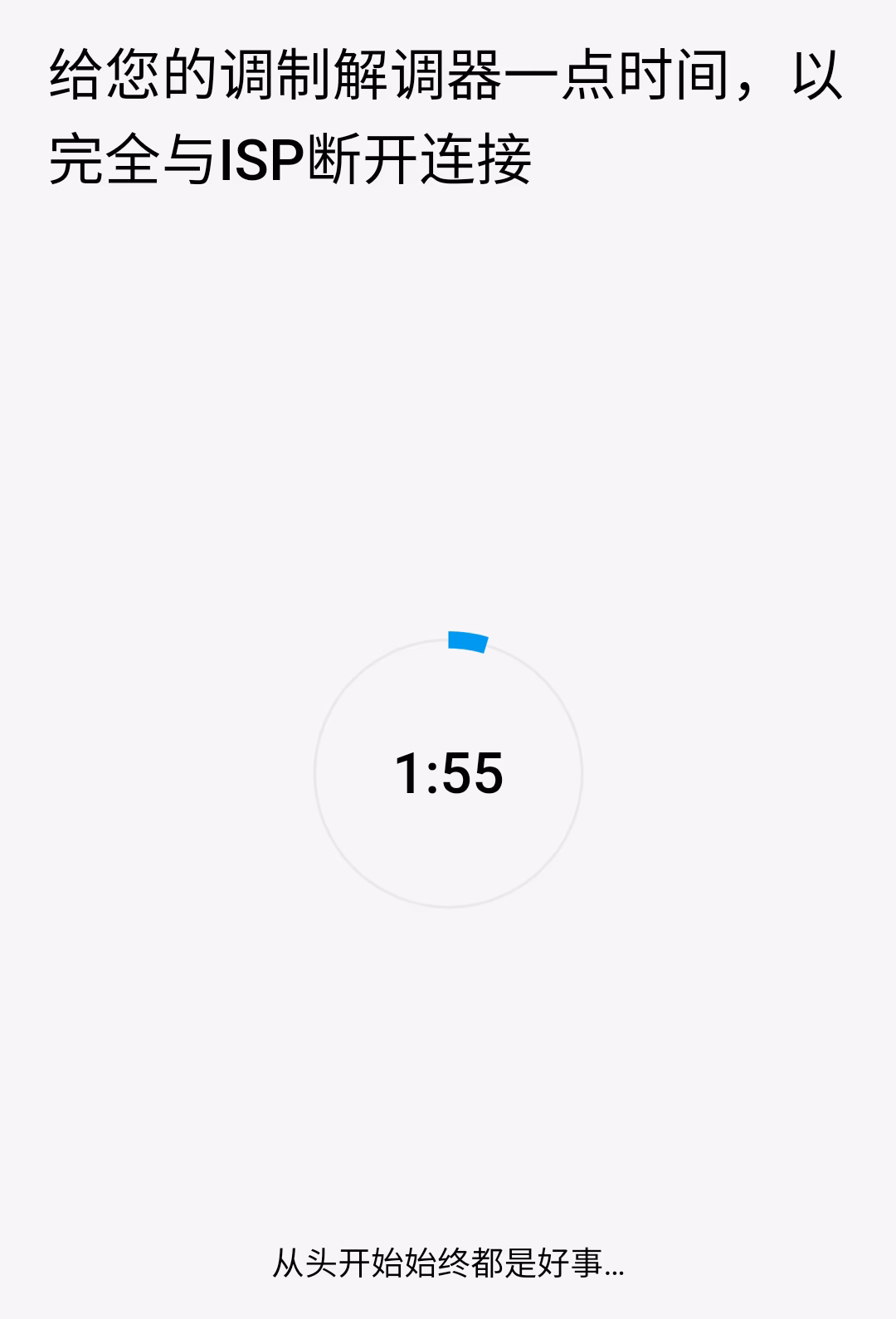 在联网阶段不能自动重启要我拔插头不说,拔了插头还要等待“与 ISP 完全断开连接”,并且要你等两分钟再插上插头。奇妙操作*2